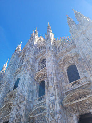 Nach diesem morgendlichen Höhepunkt stürze ich mich ins großstädtische Geschehen. In der Metrostation kaufe ich mir ein Ticket für die nächsten drei Tage. Die Metro in Mailand ist einfach zu verstehen. Ausgerüstet mit Stadtplan und Metroplan kommt man überall hin. Seit den Zwanzigerjahren verkehren die historischen Straßenbahnen und verleihen der Stadt ihren ganz besonderen Charme. Für mich heißt es aber, Prioritäten zu setzen. In den folgenden drei Tagen möchte ich mich einerseits treiben lassen und andererseits viel sehen. Ich verlasse die Metro an der Station „Duomo“ und befinde mich unmittelbar im Herzen der Stadt. Die weiße Fassade der Kathedrale Santa Maria Nascente hebt sich vom stahlblauen Himmel ab. Am liebsten würde ich mich auf den Rücken legen, um dieses Meisterwerk der Gotik zu bewundern, was jedoch angesichts der Menschenmassen nicht möglich ist. Vom „Letzten Abendmahl“ noch immer emotional erfasst, besuche ich meinen persönlichen „Himmel“. Die Camparino Bar, am Eingang der Galleria Vittorio Emanuele II. In der Glasveranda bei Campari Spritz und Snacks sitzend, beobachte ich das Treiben auf der Piazza und in der Galleria. Campari Spritz bedeutet für mich Jugend, Ausgelassenheit, Erinnerungen. „Auf einen Kaffee nach Udine“ war unser Motto in den Achtzigern, nachdem wir unseren Führerschein gemacht hatten. Niemals werde ich meinen Campari mit einem Aperol betrügen, auch wenn beide Getränke vom selben Hersteller sind. Leicht beschwipst stelle ich mich in die Warteschlange, für ein Biglietto zur Dombesichtigung. Der Mailänder Dom ist Wahrzeichen und Stolz der Stadt. Ein Gebirge aus Marmor. „Welches Wunder er ist! So großartig, so ernst, so riesengroß"! Das schrieb Mark Twain nach seinem Mailandbesuch im Jahr 1867. Dieses Bauwerk wirkt so mächtig und gleichzeitig so leicht, gekrönt von der goldenen Marienstatue an der Spitze. „Madonnina“ wird sie liebevoll von den Milanesi genannt. Bis zur Vollendung des Petersdoms Anfang des 17. Jhdts., war der Mailänder Dom die größte Kirche Italiens und gehört heute noch zu den größten Kirchen Europas. Im Innenraum überwältigt die Gotik, die in ihrer typischen Bauweise himmelwärts strebt und ihren Abschluss im 47 Meter hohen Mittelschiff als Kreuzrippengewölbe findet. Die Grundfläche umfasst 12000 m².