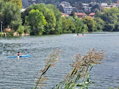 Von meinem Campingplatz in Stadtnähe führt ein wunderschöner Radwanderweg entlang des Flussufers direkt ins Zentrum. Der Po ist hier breit, ruhig fließend und bei Kanusportlerinnen und -sportlern äußerst beliebt. Die tägliche Fahrradtour in die Stadt und zurück entlang des Po genieße ich mit allen Sinnen. Das träge Fließen, die baumbewachsenen Ufer und die bunten Kanus auf dem Fluss geben ein malerisches Bild ab.